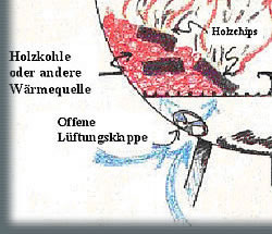 schneller, weniger Rauchgeschmack (nach Belieben)